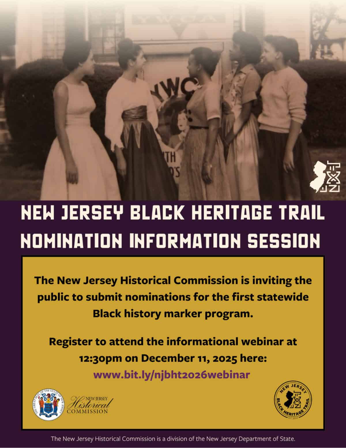 s there a special building, historic movement, or event that is important to African American history in New Jersey that you would like to recognize? If so, you should nominate them for the Black Heritage Trail. Join The New Jersey Historical Commission on Thursday, December 11 at 12:30 p.m. for an informational webinar to learn more.