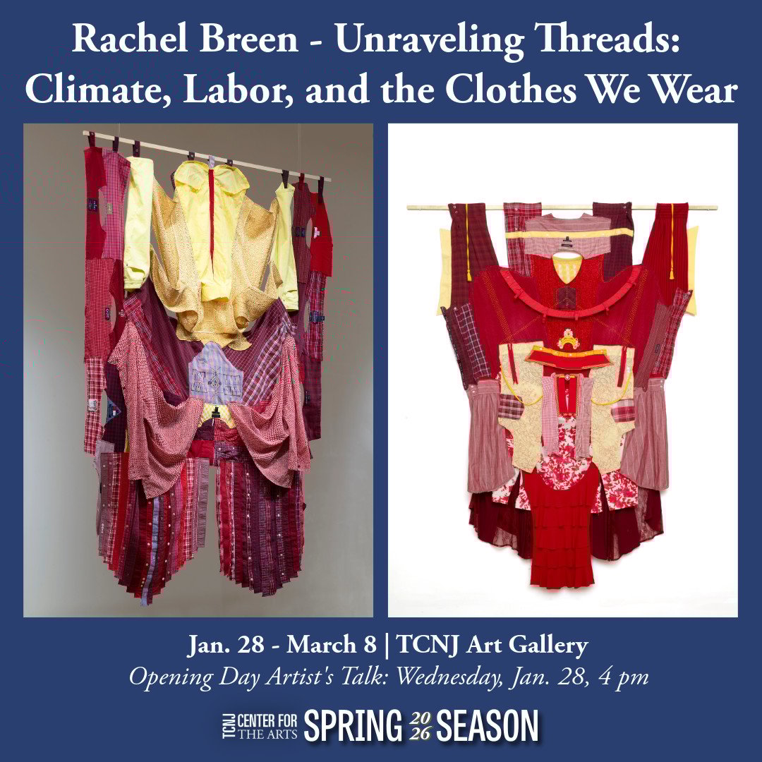 Organized with TCNJ Professor Kathleen Webber, this solo exhibition features work by Minnesota-based artist Rachel Breen. Through her textile installations and assemblages, Breen has worked to cultivate deeper understandings of labor rights, solidarity, and collective power, often through the lens of the international garment industry.