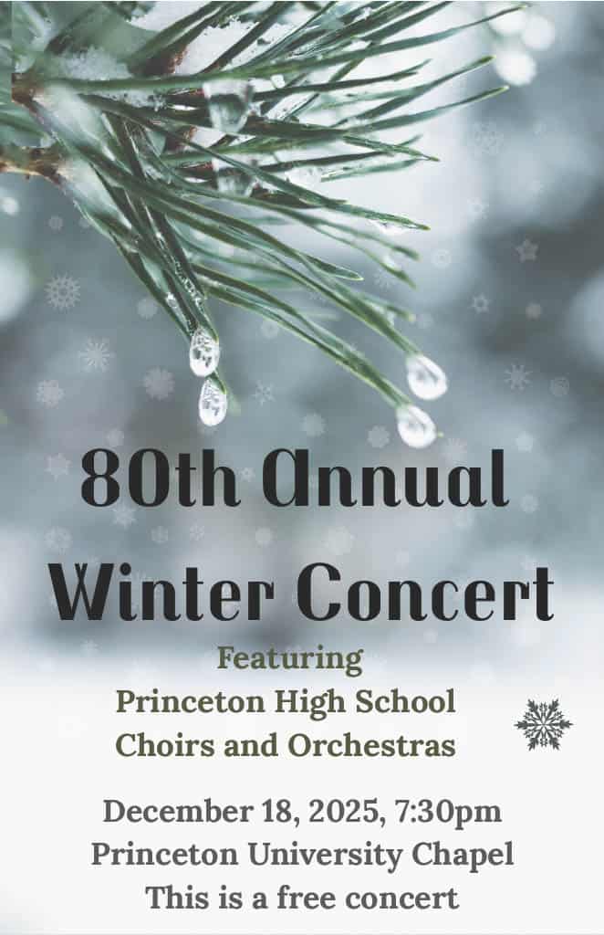 Princeton University ChapelThe 80th Annual Winter Concert is a Princeton High School and Princeton community tradition. All high school choirs and orchestras perform in this concert. The concert will conclude with the alumni joining the choirs on Bach and Handel selections. This free concert is always a highlight of the winter season and a most cherished event...